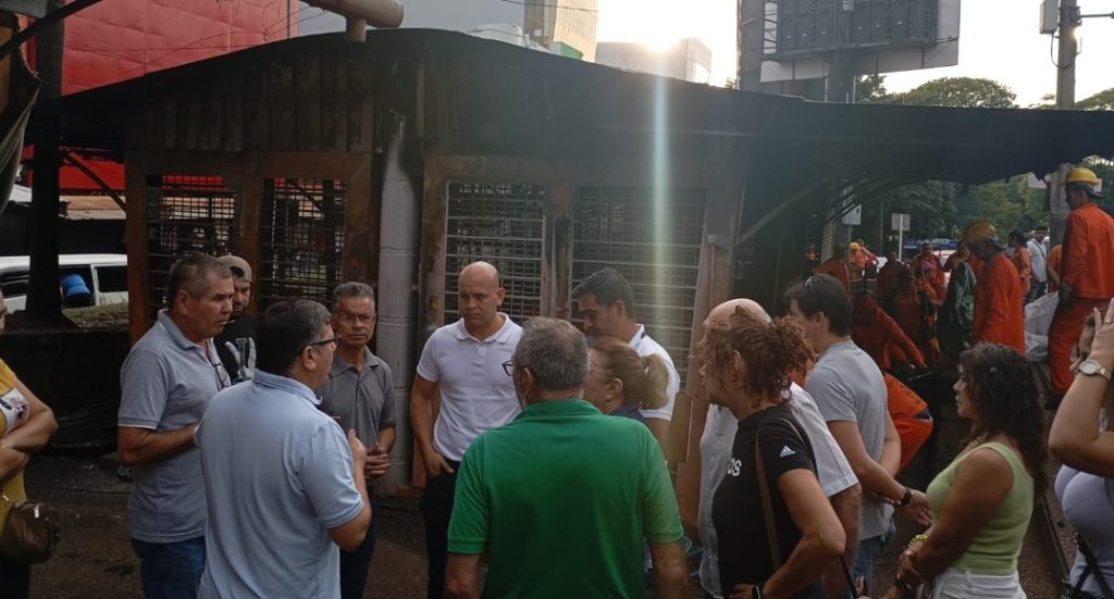 El intendente Daniel Pereira Mujica, desde tempranas horas de este lunes de Pascuas, recorrió el microcentro para acompañar a los casilleros que sufrieron importantes pérdidas a raíz del incendio que afectó varias casillas durante el feriado.