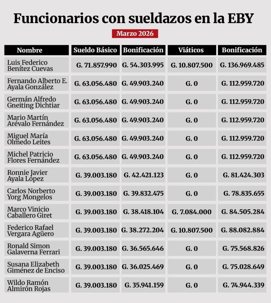No es solo una cuestión de números; es una burla a la realidad nacional. Mientras miles de paraguayos cuentan monedas para llegar a fin de mes, en la EBY la «crisis» no existe. Es una élite que vive en una nación distinta, alimentada con el dinero de todos y protegida por planillas bloqueadas al escrutinio público.