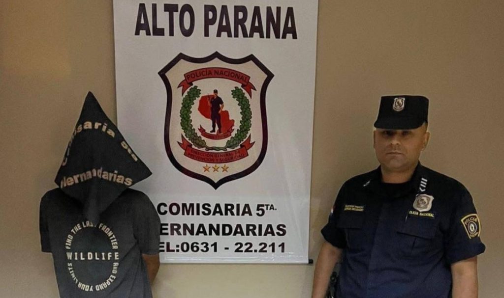 Agentes de la Comisaría 5.ª de Hernandarias aprehendieron a un hombre sindicado como presunto autor de un hecho de hurto y lograron recuperar la totalidad de los objetos denunciados como sustraídos. El procedimiento se realizó el jueves 23 de abril de 2026, alrededor de las 23:00, en la vía pública del barrio Santo Domingo.